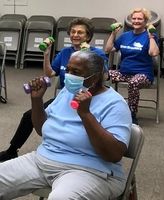 After consistent participation, you will find yourself growing stronger each week. Gradually you may start standing beside the chair and holding on for stability (instead of being seated the entire class), then standing beside the chair without holding on, and possibly lose the need for the chair altogether! Our classes concentrate on mobility, flexibility, endurance, and strength. These attributes keep us active and living independently!